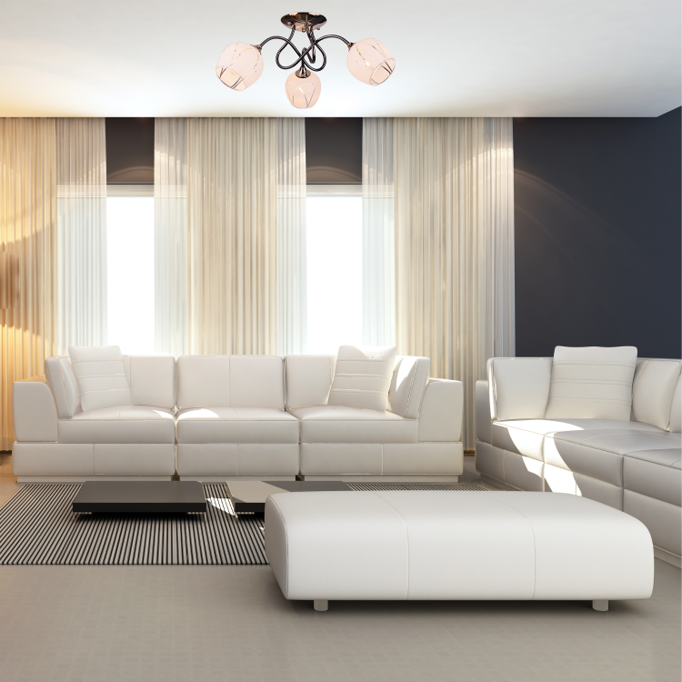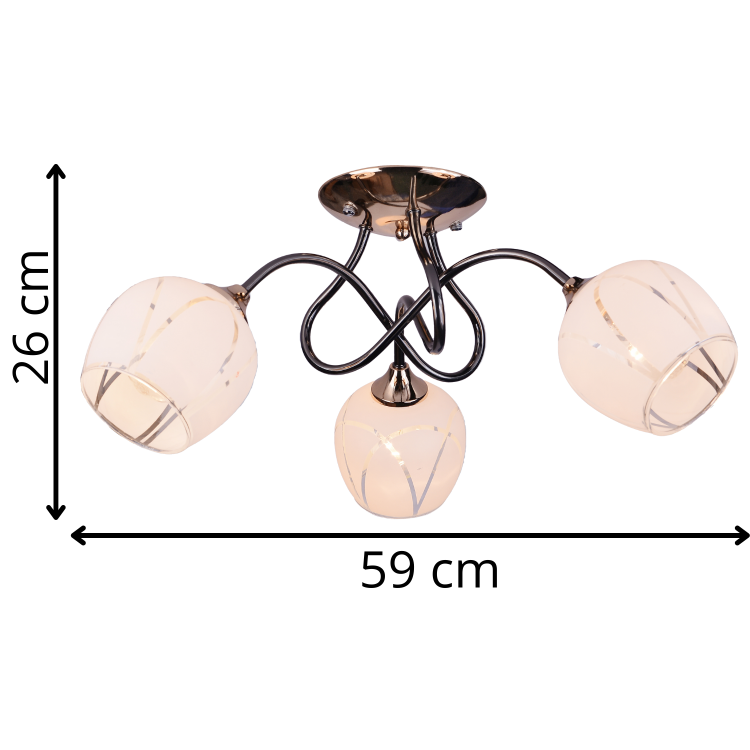Żyrandol Linda 3 to elegancka lampa sufitowa o dekoracyjnej, lekko falistej konstrukcji, która nadaje wnętrzu subtelnej dynamiki. Metalowe ramiona w ciemnym wykończeniu pięknie komponują się z jasnymi, szklanymi kloszami ozdobionymi delikatnym wzorem. Trzy punkty świetlne zapewniają równomierne i przyjemne oświetlenie, idealne do salonu, jadalni lub sypialni. Model łączy klasyczną formę z nowoczesnym akcentem, dzięki czemu łatwo dopasować go do różnych aranżacji.