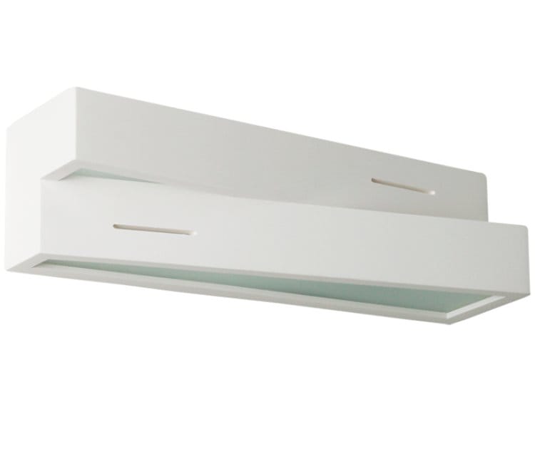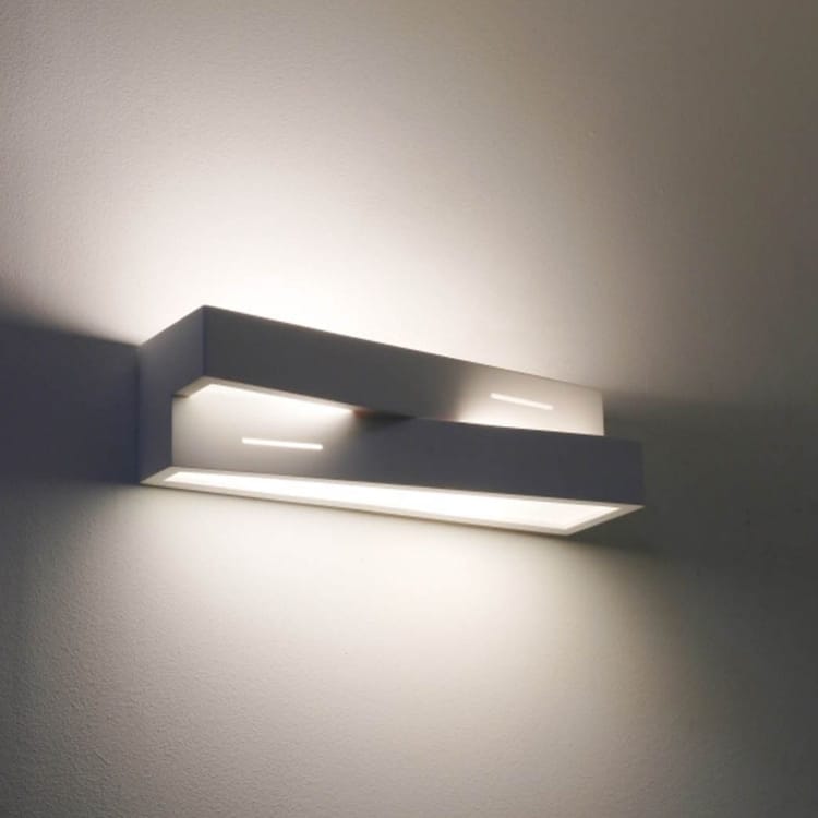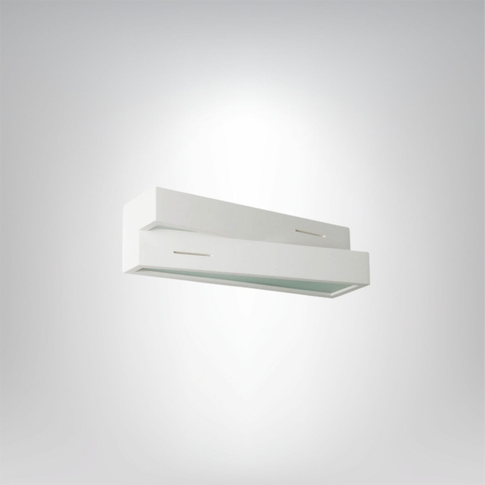 Kinkiet Bruno to stylowa, gipsowa oprawa ścienna natynkowa o wyjątkowej, geometrycznej formie. Jej dwupoziomowa konstrukcja i subtelne szczeliny świetlne nadają wnętrzu nowoczesny charakter, łącząc elegancję z designerską prostotą.