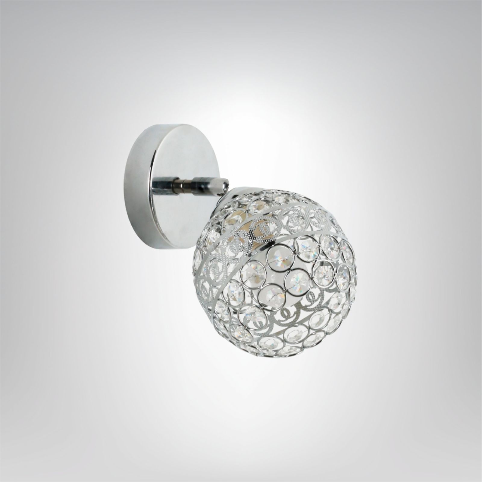 Kinkiet Riwana to wyjątkowo elegancka i efektowna propozycja dla miłośników dekoracyjnego oświetlenia. Jego kulisty klosz wykonany jest z metalowej siatki bogato zdobionej połyskującymi kryształkami, które pięknie rozpraszają światło, tworząc na ścianach efekt błyszczących refleksów. Chromowana podstawa dodaje całości luksusowego charakteru, dzięki czemu kinkiet świetnie sprawdzi się w salonie, sypialni, przedpokoju czy stylowej toaletce.