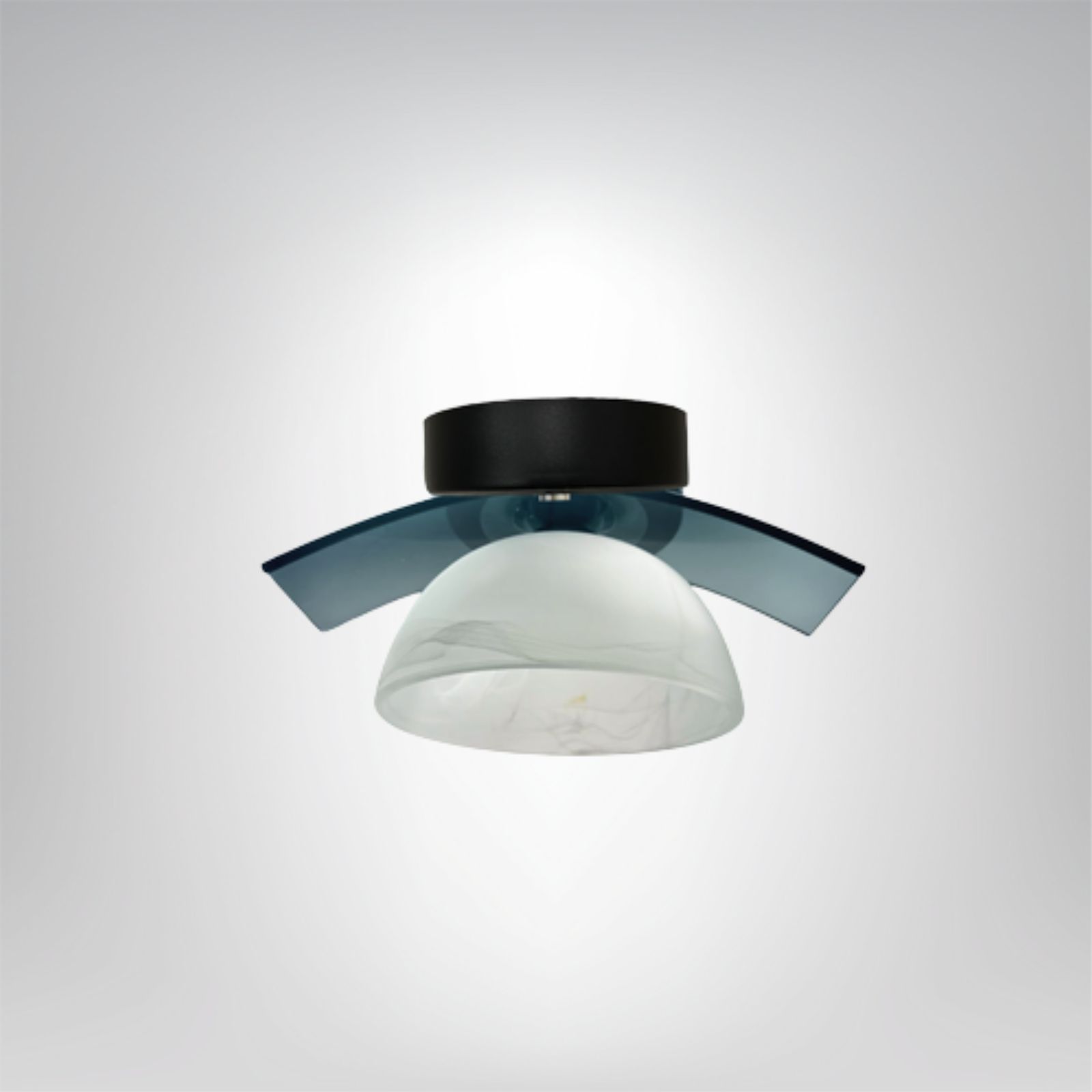 Lampa sufitowa Costas A to wyjątkowe połączenie nowoczesnej formy i oryginalnego wzornictwa. Jej charakterystyczny wygląd tworzą dwie stylowo wyprofilowane, przydymione szklane listwy oraz matowy, mleczny klosz o delikatnym marmurkowym wykończeniu. Całość osadzona jest na solidnej, czarnej podsufitce, co nadaje lampie elegancki i niepowtarzalny charakter.