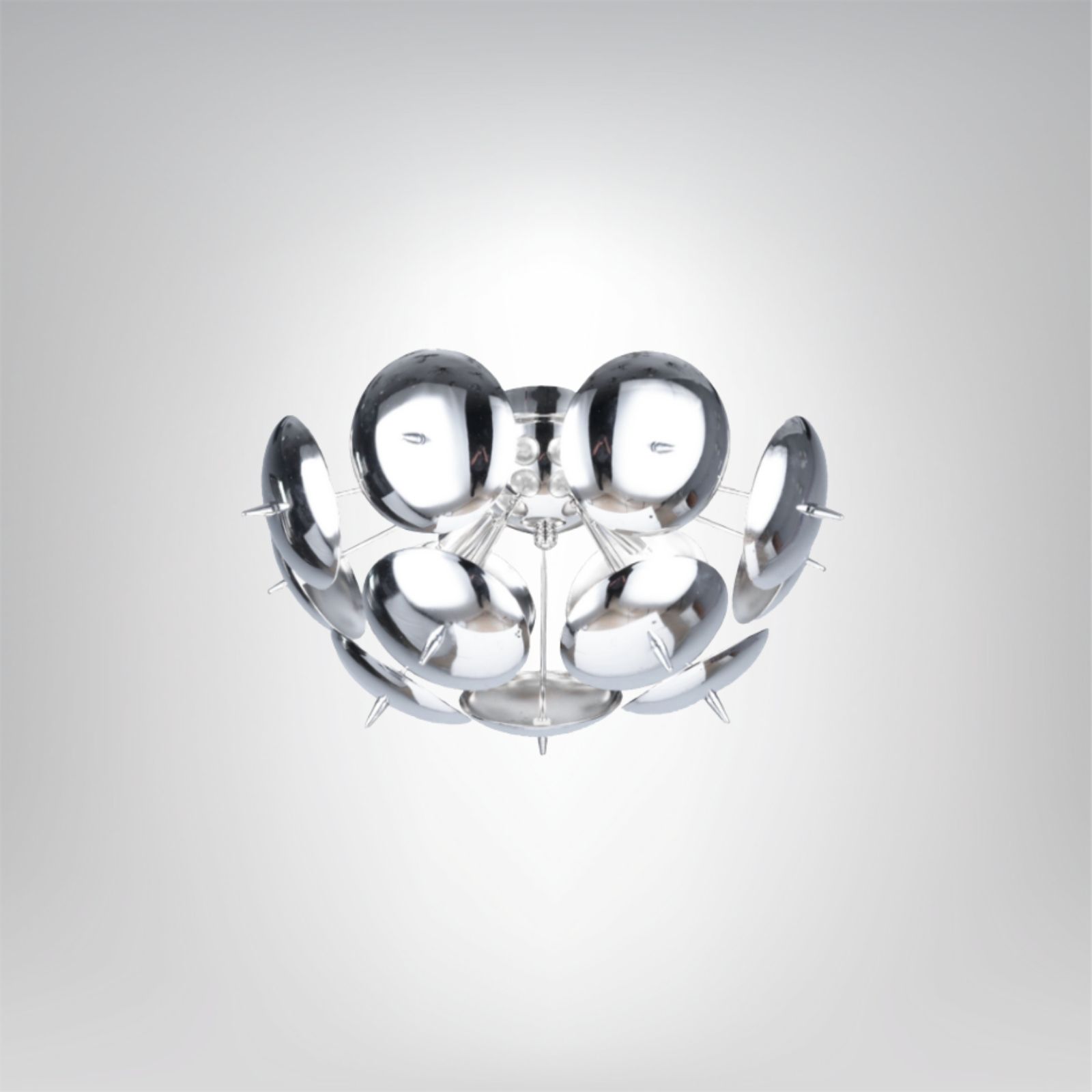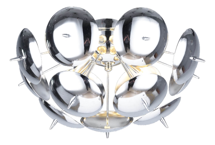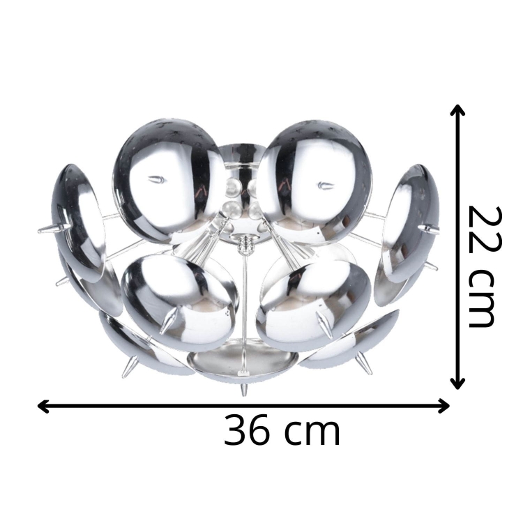 Lampa sufitowa Muskat P4 to wyjątkowa propozycja dla miłośników designerskich, nowoczesnych form. Jej niepowtarzalny, kulisty kształt złożony z błyszczących, chromowanych talerzy tworzy efekt przestrzennej instalacji, która przyciąga wzrok i nadaje wnętrzu luksusowy charakter. Odbijająca światło powierzchnia elementów tworzy piękne refleksy, dzięki czemu lampa nie tylko oświetla, ale również dekoruje przestrzeń w wyjątkowy sposób.