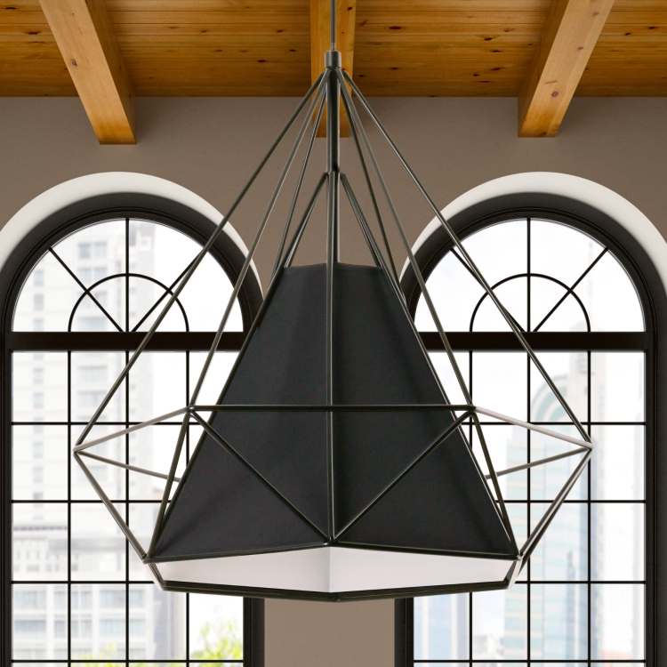 Lampa wisząca Alma B to wyrazisty element dekoracyjny, który przyciąga uwagę geometryczną formą i nowoczesnym designem. Jej charakterystyczna konstrukcja z metalowych prętów otacza centralny klosz, tworząc efektowną, przestrzenną kompozycję. Matowe wykończenie dodaje elegancji i subtelnego loftowego charakteru, dzięki czemu Alma B świetnie sprawdzi się w salonie, jadalni, nad wyspą kuchenną oraz w nowoczesnych wnętrzach komercyjnych.