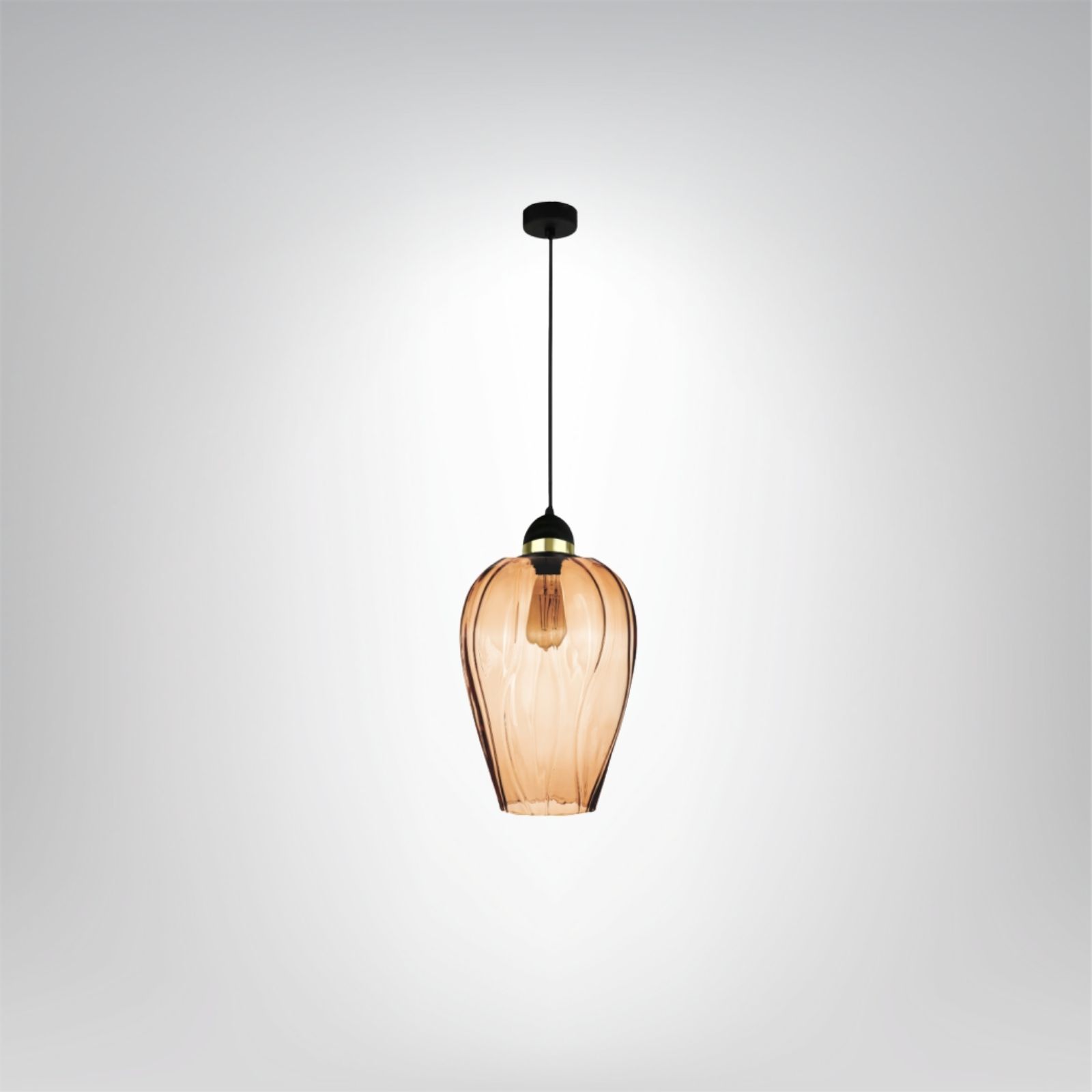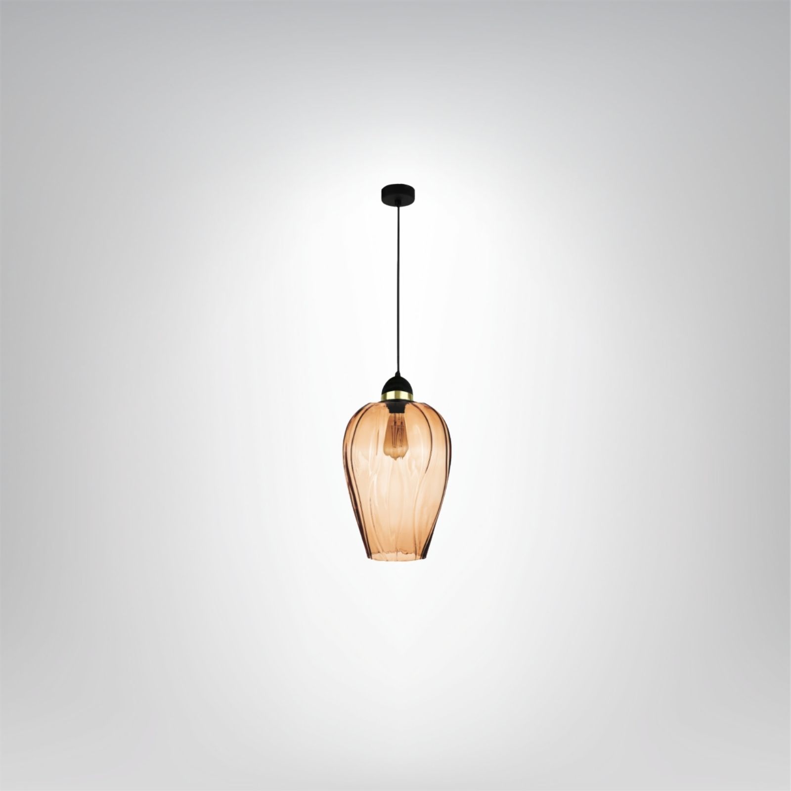 Brissa 1 to elegancka lampa wisząca dostępna w dwóch rozmiarach, zaprojektowana z myślą o wnętrzach, w których liczy się zarówno efekt dekoracyjny, jak i przytulna atmosfera. Jej klosz wykonany jest z pięknie formowanego szkła o subtelnym, falowanym wykończeniu, które nadaje lampie lekkości i szlachetnego charakteru. Delikatnie przydymiony, bursztynowy odcień szkła w połączeniu z czarnym wykończeniem i złotym akcentem tworzy wyjątkowo stylową kompozycję.