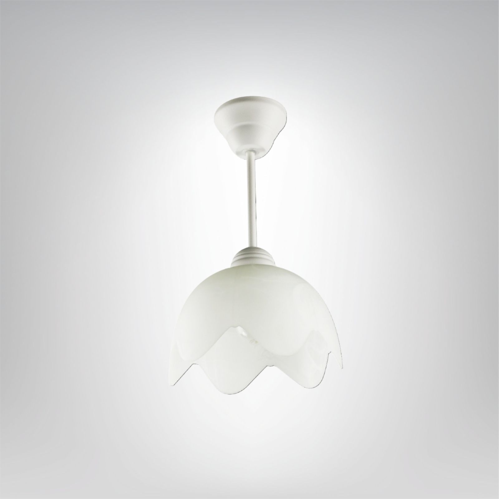 Cyrkonia C to subtelna i klasyczna lampa wisząca, która wyróżnia się eleganckim, falowanym kloszem z mlecznego szkła. Delikatna forma inspirowana kształtem płatków nadaje wnętrzu lekkości, a ciepłe, równomierne światło tworzy przytulną atmosferę idealną do kuchni, jadalni, sypialni czy salonu.