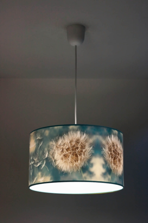 Lampa Dandelion to wyjątkowa propozycja dla miłośników naturalnych motywów i świeżych, optymistycznych aranżacji. Jej klosz zdobi wyrazisty nadruk mleczy dmuchawców na turkusowym tle, który przywodzi na myśl letni wiatr, swobodę i delikatność natury. Lampa pięknie rozświetla przestrzeń, a jednocześnie pełni funkcję dekoracyjną – idealnie sprawdzi się w salonie, sypialni, pokoju młodzieżowym czy kreatywnej przestrzeni domowej.