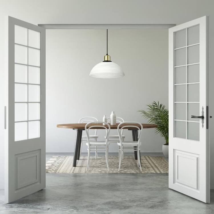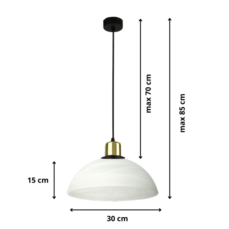 Davio C to elegancka lampa wisząca z mlecznym kloszem i złotym akcentem, który dodaje wnętrzu szyku. Zapewnia miękkie, równomierne oświetlenie idealne do kuchni, jadalni lub salonu.