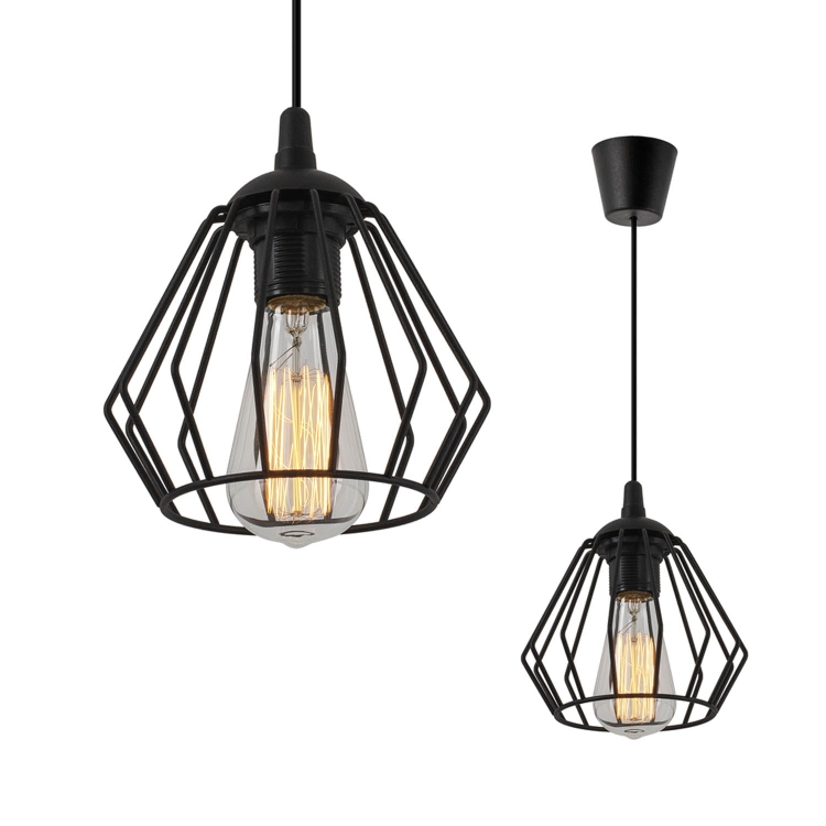 Deo 1 to nowoczesna lampa wisząca utrzymana w industrialnej stylistyce, której sercem jest dekoracyjny, ażurowy klosz wykonany z czarnego metalu. Geometryczna konstrukcja odsłania żarówkę, dzięki czemu światło jest efektownie rozpraszane i tworzy nastrojowy klimat. To idealny wybór do wnętrz loftowych, nowoczesnych oraz skandynawskich – świetnie sprawdzi się nad wyspą kuchenną, w przedpokoju lub jako pojedynczy akcent świetlny w salonie.