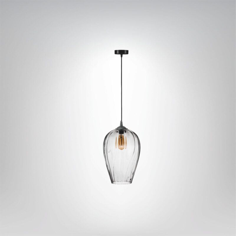 Transparentny klosz o organicznych, delikatnie pofalowanych liniach pięknie rozprasza światło, tworząc we wnętrzu ciepły i przytulny nastrój.