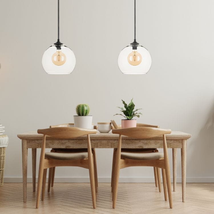 Dodaj swojemu wnętrzu lekkości i elegancji dzięki stylowej lampie wiszącej z przezroczystym, szklanym kloszem w kształcie kuli.