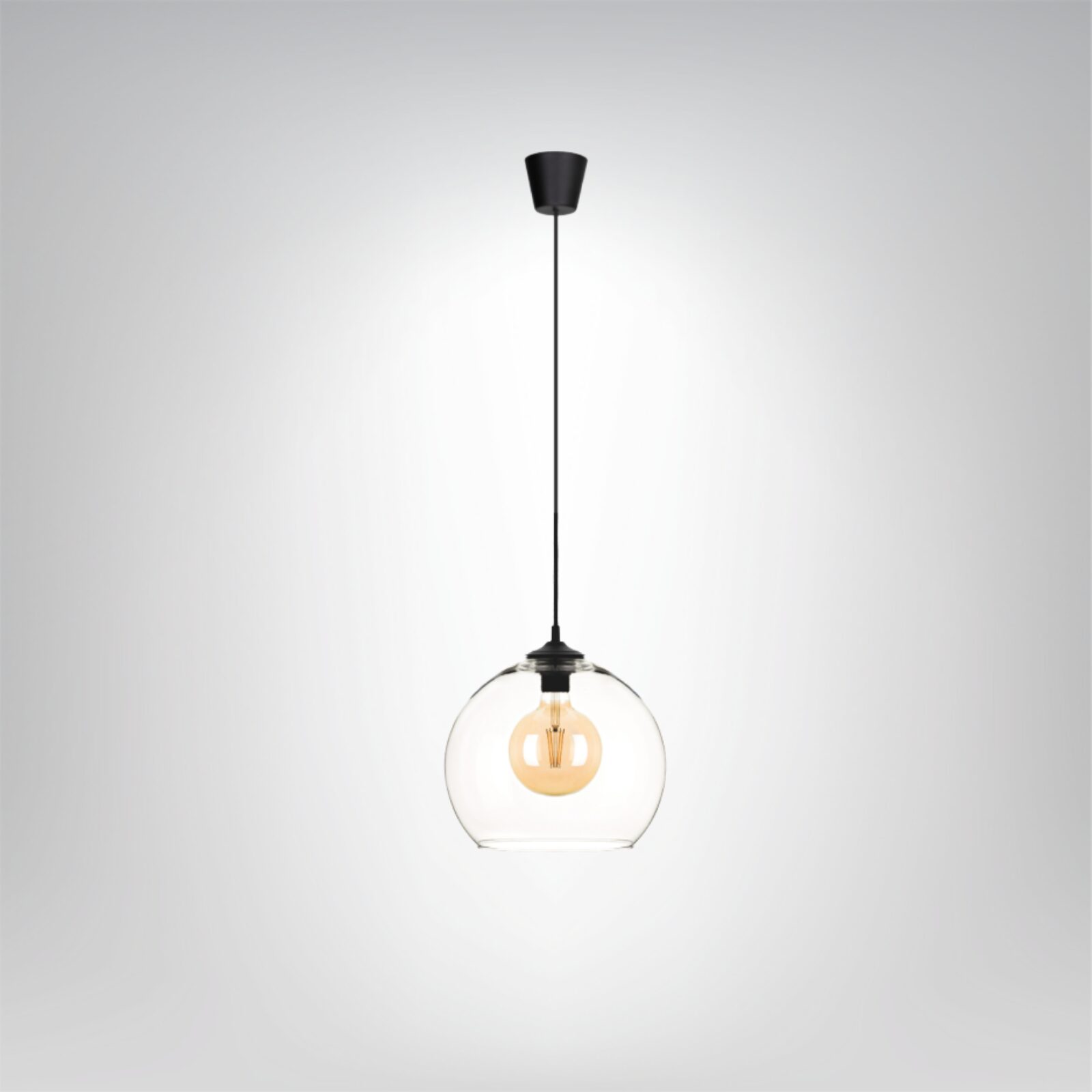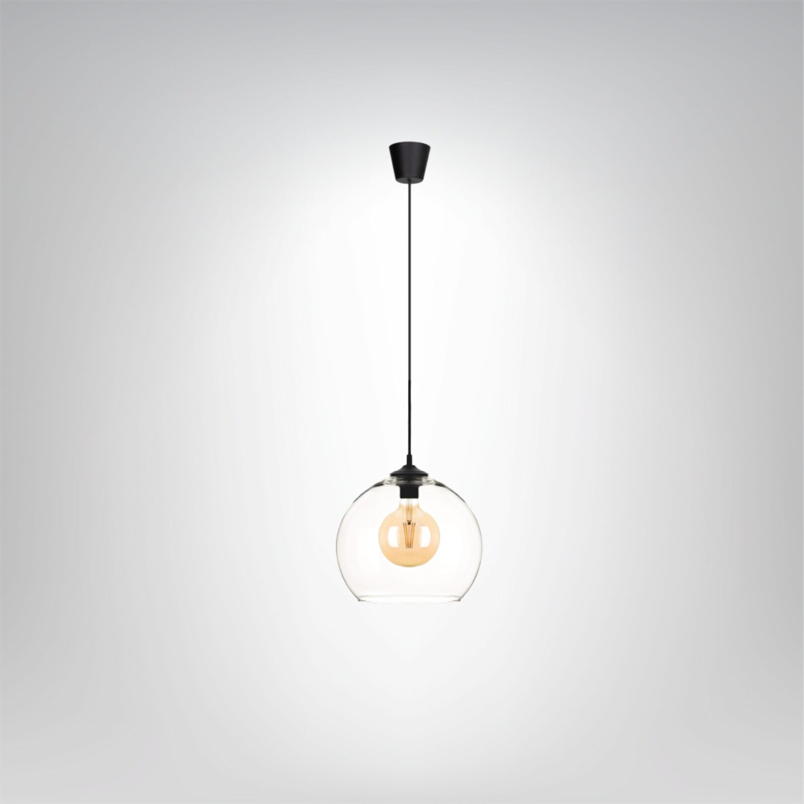 Evelle to elegancka lampa wisząca z transparentną szklaną kulą, dostępna w trzech rozmiarach, idealna do nowoczesnych i minimalistycznych aranżacji.