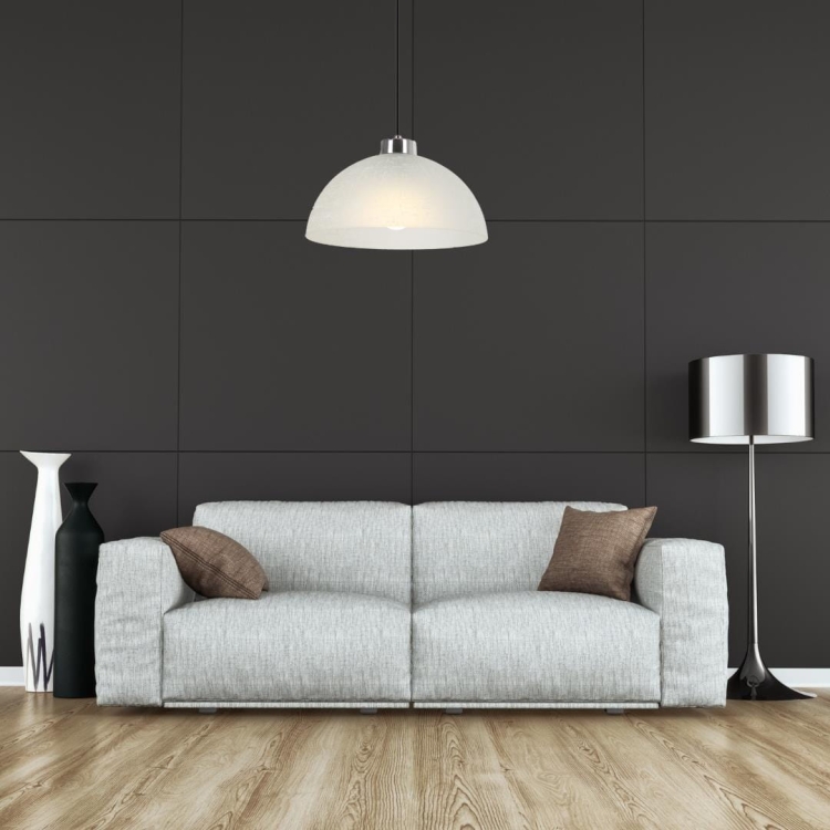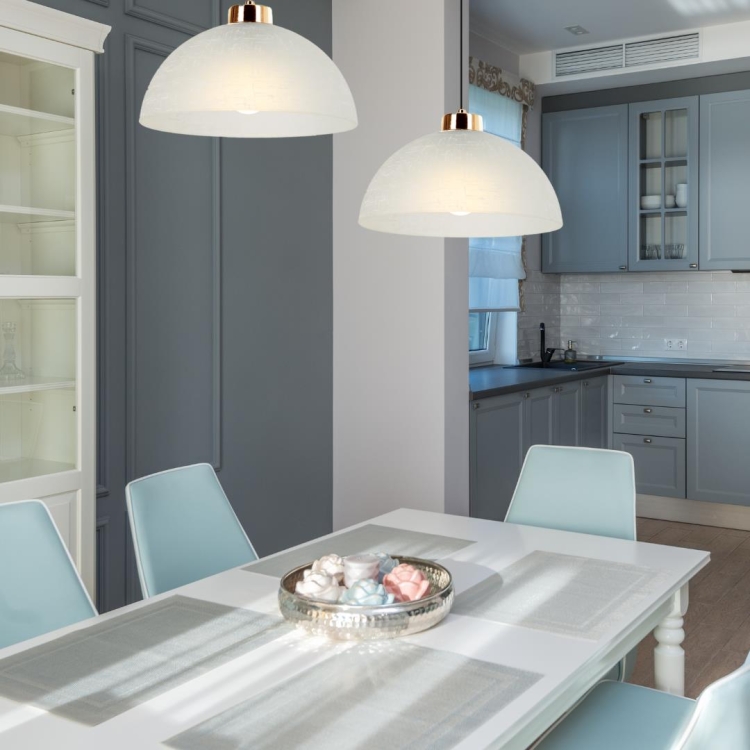 Lampa wisząca Itaka to elegancka propozycja dla osób ceniących ponadczasowy design z nutą nowoczesnej klasyki. Półkulisty klosz wykonany z matowego szkła o delikatnej strukturze subtelnie rozprasza światło, tworząc przyjemną i równomierną iluminację wnętrza. Prosta forma lampy doskonale wpisuje się zarówno w aranżacje nowoczesne, jak i klasyczne, skandynawskie czy minimalistyczne.