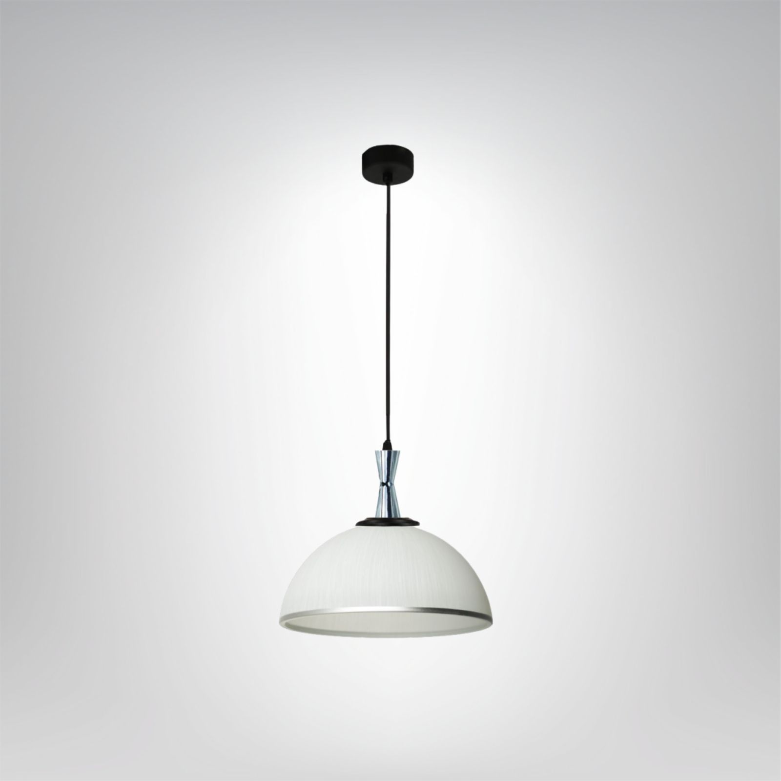 Lampa wisząca Mak B to klasyczna propozycja w nowoczesnym wydaniu, idealna do kuchni, jadalni czy salonu. Jej szklany klosz o delikatnej, mlecznej strukturze i subtelnej dekoracji prezentuje się elegancko i ponadczasowo. Dolna część klosza wykończona jest srebrną linią, która dodaje lampie charakteru. Chromowany element przy oprawce nadaje całości lekkości i stanowi efektowny detal.
