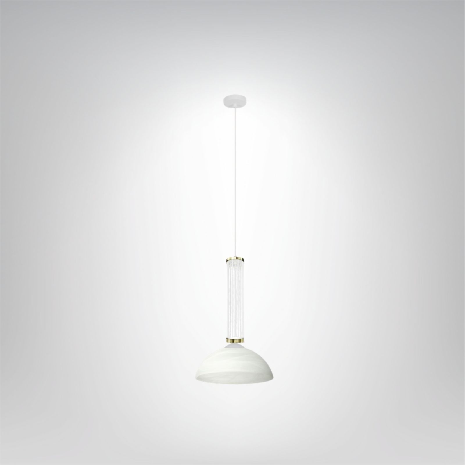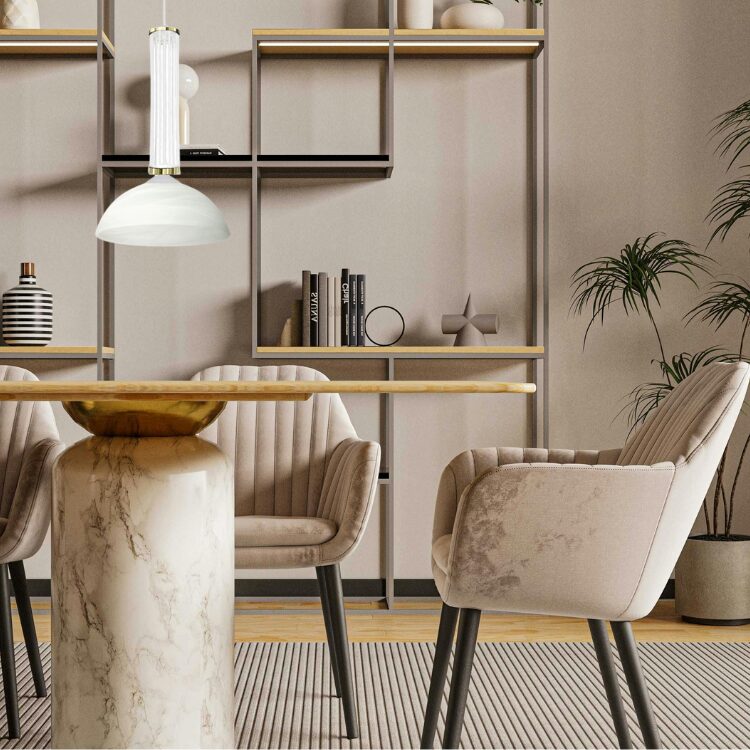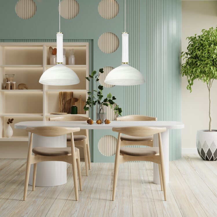 Lampa wisząca Millie 1B to wyjątkowe połączenie klasyki i subtelnego luksusu. Delikatnie żłobiony, podłużny element dekoracyjny przypominający kryształ nadaje oprawie lekkości, jednocześnie wprowadzając do wnętrza elegancki charakter. Kulisty klosz typu weneckiego marmurka (białe szkło z pięknymi, subtelnymi smugami) emituje przyjemne, miękkie światło, które doskonale sprawdzi się zarówno w salonie, jak i nad stołem w jadalni czy w sypialni.