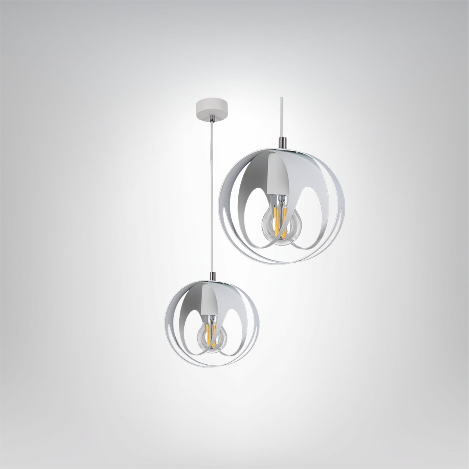 Ringo 1 to nowoczesna lampa wisząca o wyjątkowej, przestrzennej formie stworzonej z symetrycznie wyprofilowanych metalowych elementów. Jej ażurowa, kulista konstrukcja sprawia, że światło swobodnie rozchodzi się po pomieszczeniu, tworząc dekoracyjne refleksy. Biała kolorystyka dodaje lampie lekkości i świetnie komponuje się zarówno z minimalistycznymi wnętrzami, jak i nowoczesnymi aranżacjami. Idealnie sprawdzi się nad stołem, w salonie, sypialni czy w przestrzeni komercyjnej. Lampa najlepiej prezentuje się z dekoracyjną żarówką filament, która dodatkowo podkreśla jej designerski charakter.