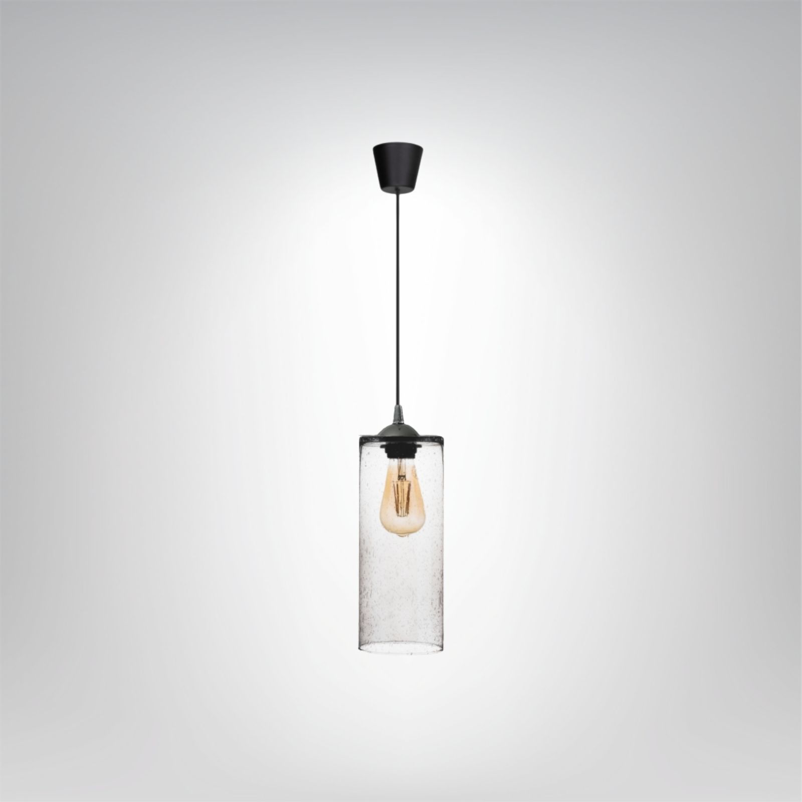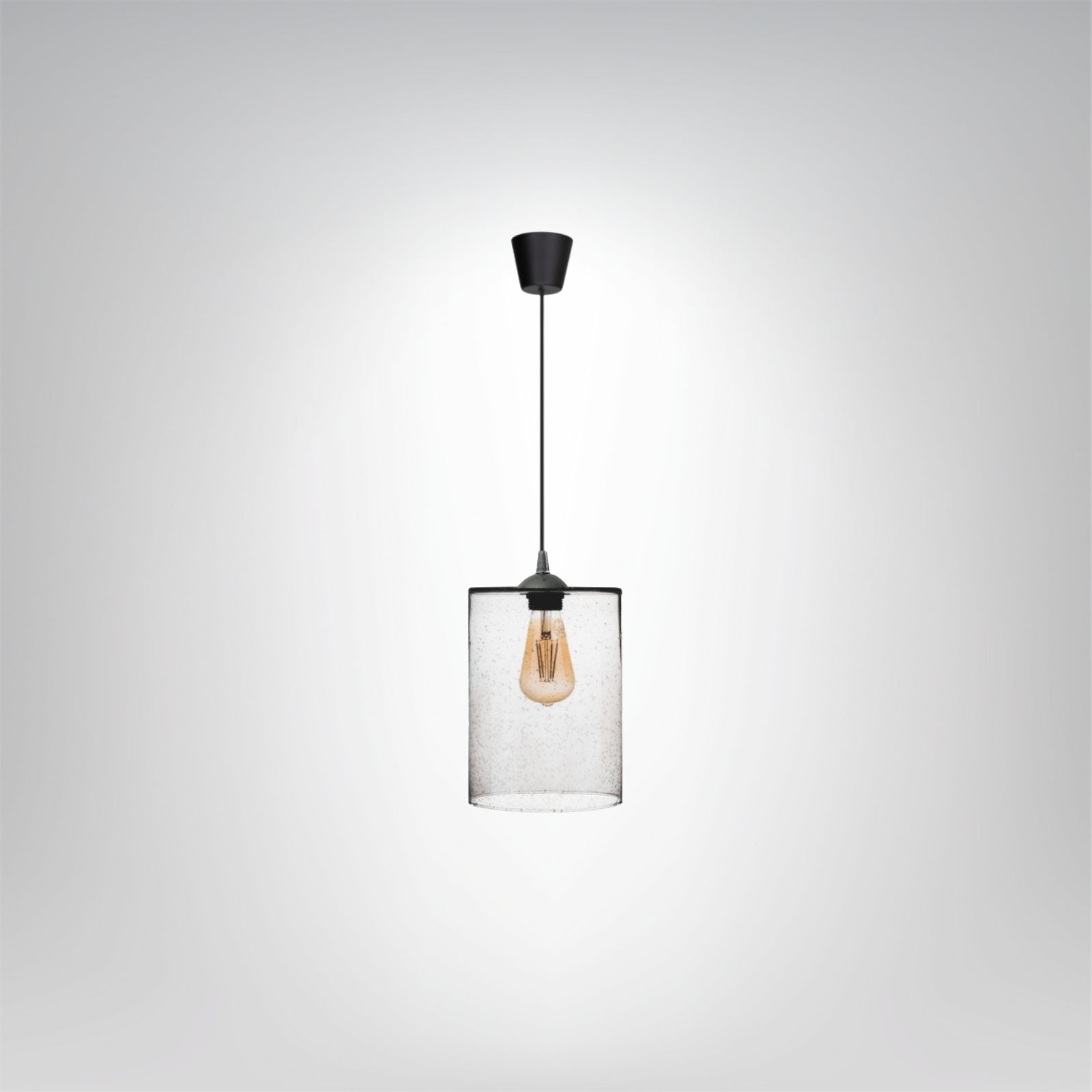 Lampa wisząca VIRELLA to propozycja dla osób ceniących minimalistyczny styl z nutą loftowego charakteru. Jej klosz wykonany jest z transparentnego szkła z dekoracyjnymi pęcherzykami powietrza, które pięknie rozpraszają światło i nadają lampie wyjątkową, rzemieślniczą estetykę. Prosty walcowy kształt klosza oraz czarne wykończenie oprawy sprawiają, że model ten idealnie wpasuje się w nowoczesne, industrialne oraz skandynawskie wnętrza.