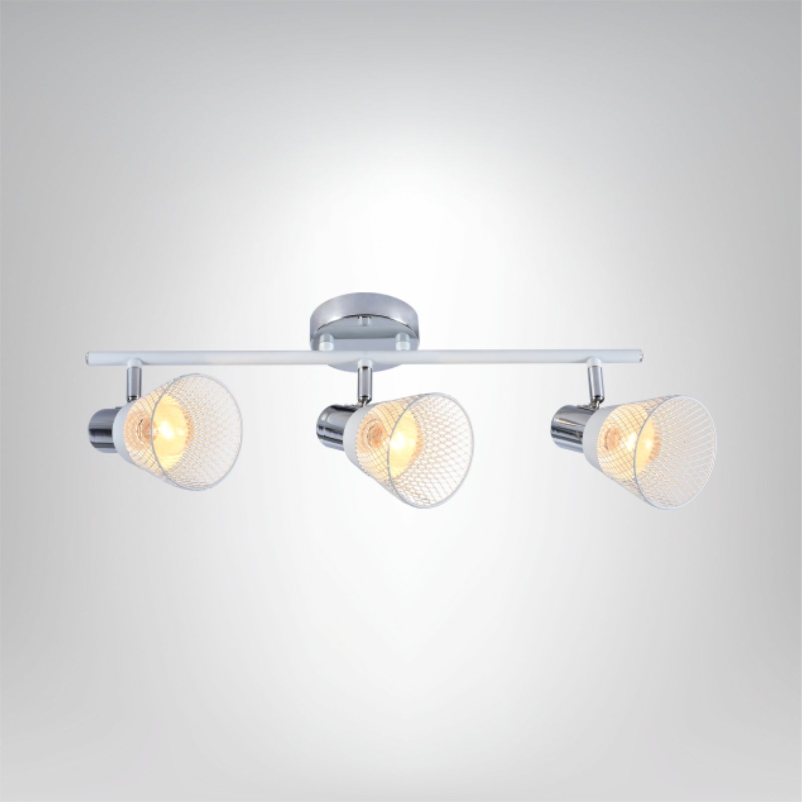 Lampa Flavio 3 to połączenie nowoczesnego designu i praktyczności. Trzy ruchome, ażurowe klosze z metalu w kolorze bieli i chromu pozwalają precyzyjnie skierować światło, tworząc efektowny i funkcjonalny akcent w każdym wnętrzu.