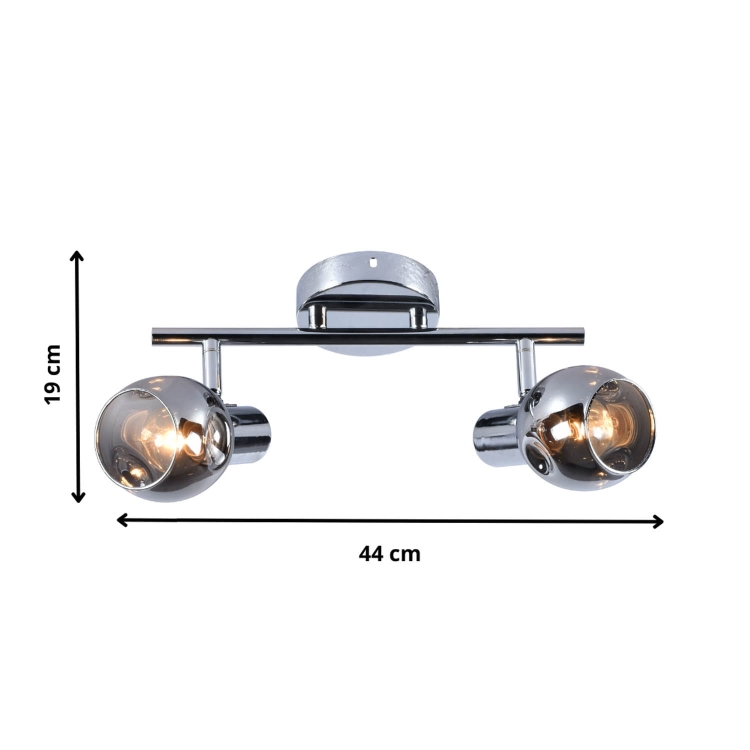 Listwa Lugio 2 to stylowa oprawa, która łączy nowoczesny design z funkcjonalnością. Dwa regulowane reflektory w chromowanej oprawie i szklanych kloszach o lekko przydymionym odcieniu tworzą efektowne, ciepłe oświetlenie. Idealnie sprawdzi się jako oświetlenie w salonie, korytarzu, sypialni lub nad lustrem, nadając wnętrzu eleganckiego charakteru.