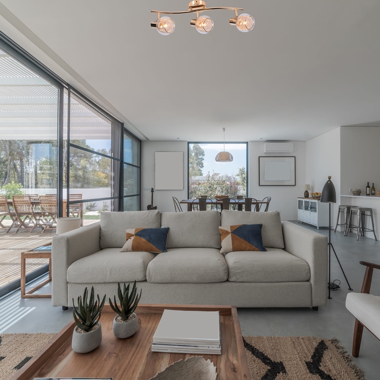 Trzy ruchome reflektory umożliwiają kierowanie światła tam, gdzie jest najbardziej potrzebne, co czyni listwę SOMI 3 praktycznym wyborem zarówno do większych, jak i średnich pomieszczeń. Doskonale sprawdzi się w salonie, sypialni, jadalni, eleganckim korytarzu czy gabinecie. Solidne wykonanie z metalu i szkła zapewnia trwałość i wysoką estetykę przez lata.