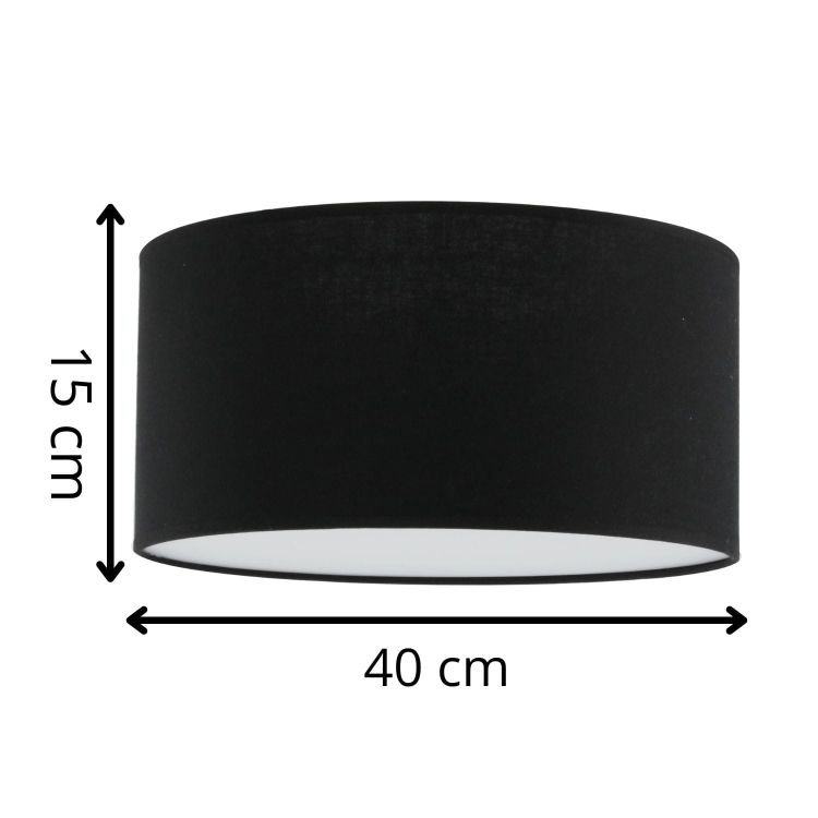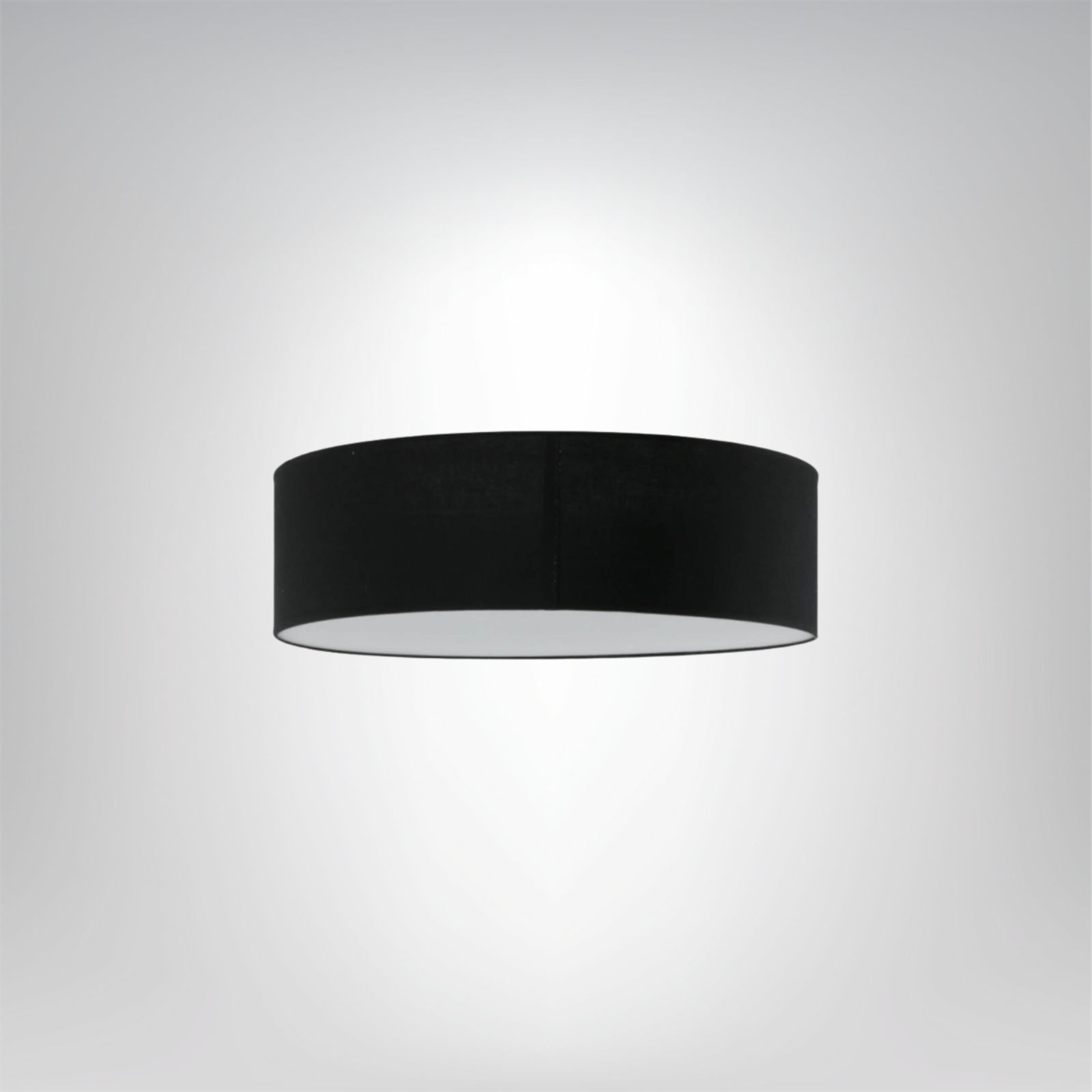 Stylowy plafon z czarnym tekstylnym abażurem i mlecznym dyfuzorem, który zapewnia miękkie, równomierne światło. Idealny do eleganckich i nowoczesnych wnętrz.