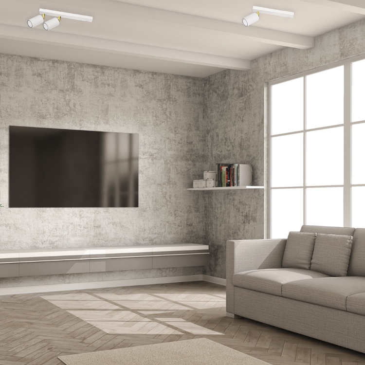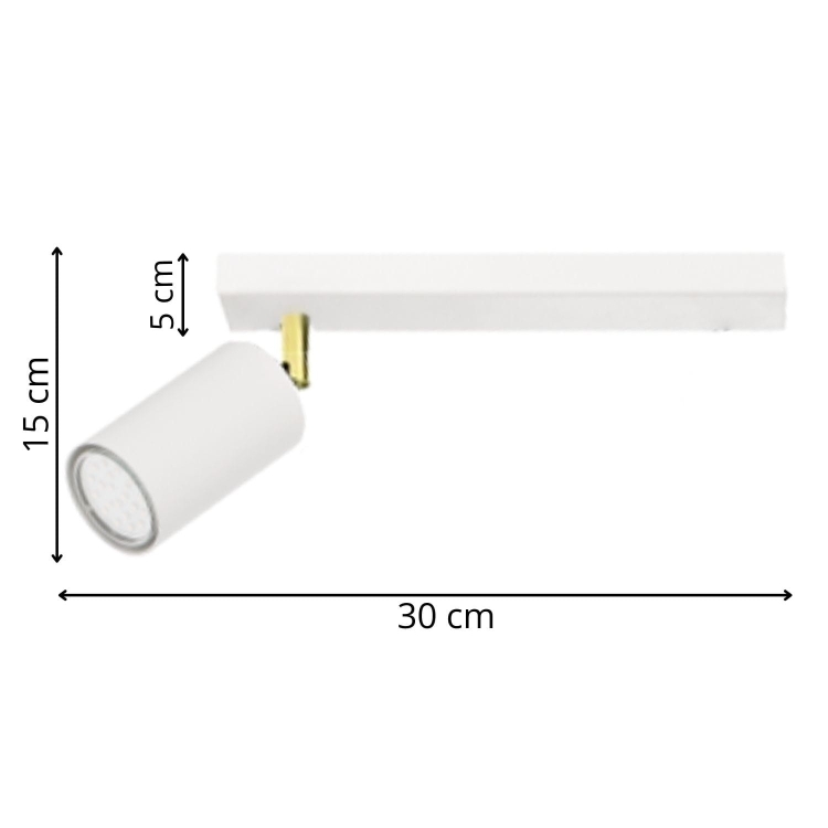 Plafon Larisa 1 to minimalistyczna propozycja o nowoczesnym charakterze, idealna do współczesnych wnętrz. Smukła, geometryczna listwa w kolorze białym została uzupełniona jednym cylindrycznym reflektorem, który można regulować, precyzyjnie kierując strumień światła. Subtelny, złoty detal przy mocowaniu spotu dodaje całości elegancji i delikatnie przełamuje prostą formę.