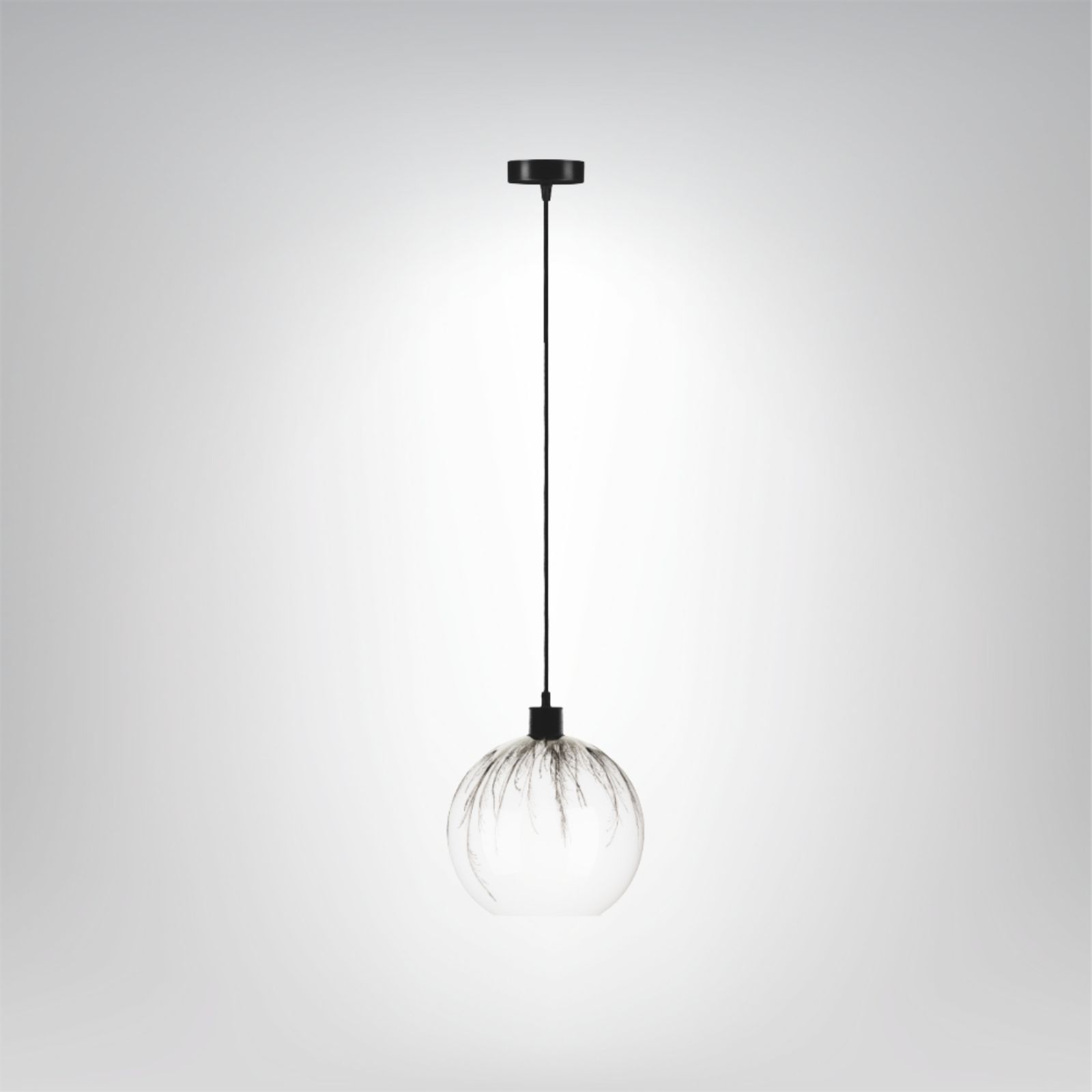Kolekcja Salin to wyjątkowe połączenie elegancji, subtelności i artystycznego detalu. Jej charakterystycznym elementem są szklane klosze w formie idealnej kuli, ozdobione dekoracyjnym, czarnym wzorem przypominającym rozchodzące się promienie, gałązki lub delikatne pęknięcie szkła. Ten efekt tworzy niezwykle intrygujący, niemal biżuteryjny charakter lampy, wpisując ją w trend nowoczesnych, designerskich wnętrz.