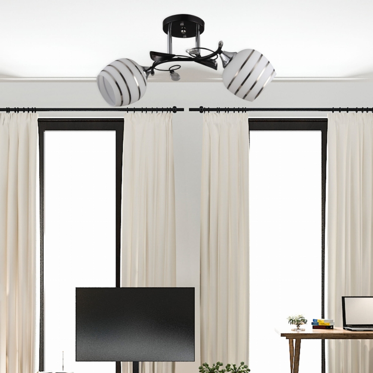 Żyrandol Milton 2 to nowoczesna lampa sufitowa, która łączy prostą formę z wyrazistym detalem. Dwa szklane klosze z poziomymi zdobieniami subtelnie rozpraszają światło, tworząc przyjemną i równomierną iluminację. Czarna konstrukcja w połączeniu z chromowanymi elementami nadaje lampie elegancki, uniwersalny charakter, dzięki czemu doskonale sprawdzi się zarówno w salonie, sypialni, jak i jadalni. Milton 2 to propozycja dla osób ceniących nowoczesny design i funkcjonalne oświetlenie.