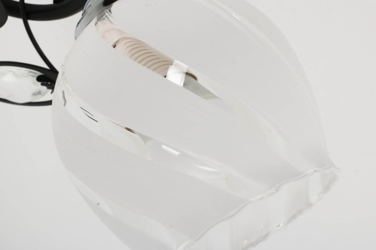 Elegancki żyrandol z dwoma białymi, dekoracyjnymi kloszami i kontrastującą czarną konstrukcją. Idealny wybór do wnętrz, w których liczy się lekka forma i przyjemne, rozproszone światło.