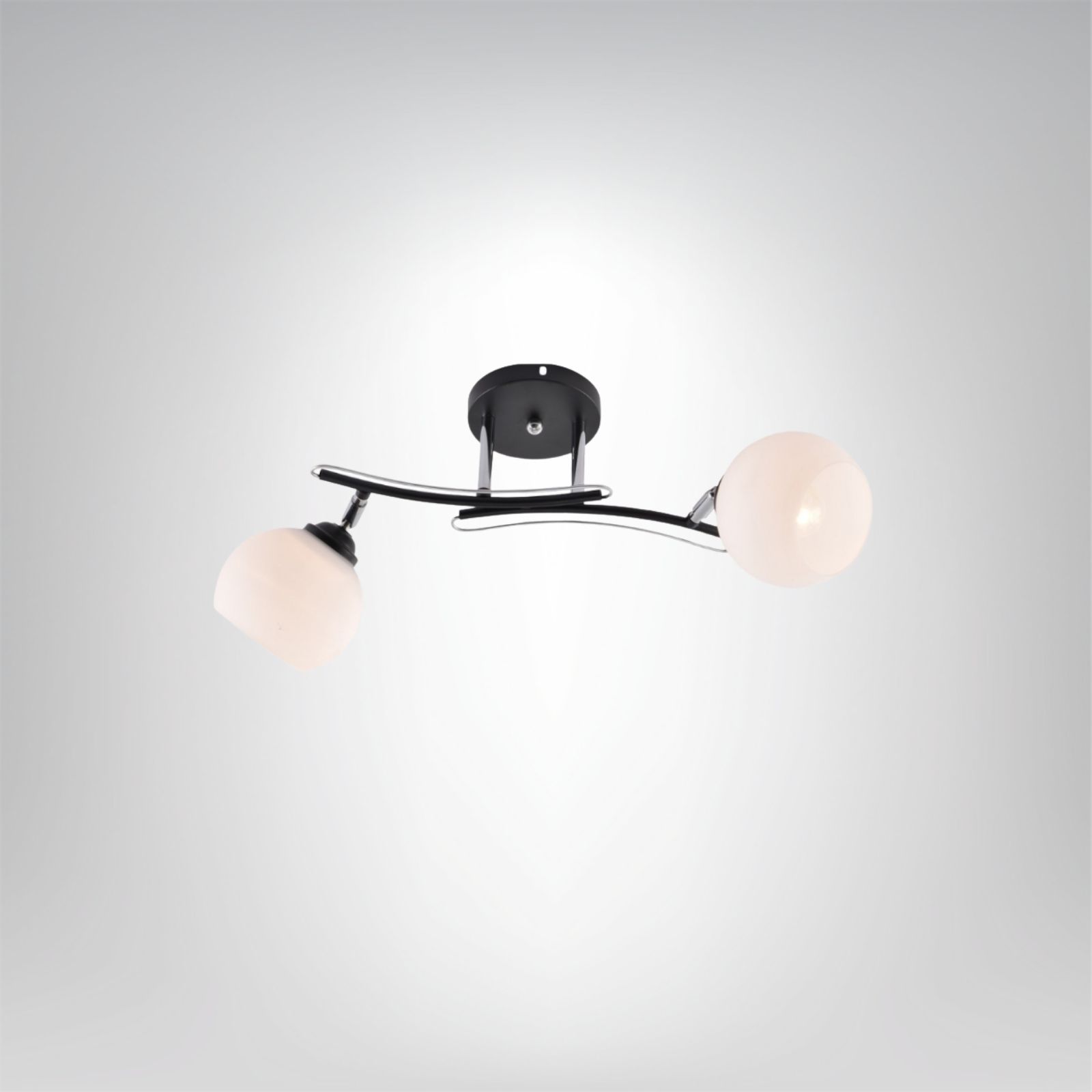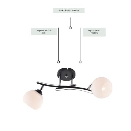 Nowoczesny żyrandol z dwoma mlecznymi kloszami i subtelnie wygiętą konstrukcją. Daje przyjemne, rozproszone światło i pasuje do minimalistycznych wnętrz.