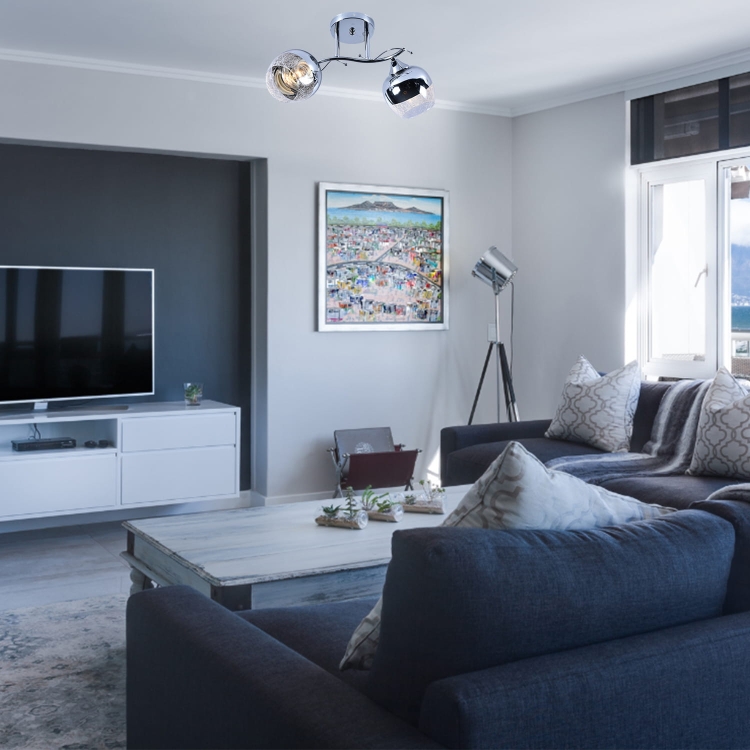 Żyrandol Olmi 2 to elegancka lampa sufitowa, która łączy nowoczesną formę z dekoracyjnym wykończeniem. Dwa efektowne klosze z delikatnym, spękanym wzorem subtelnie rozpraszają światło, tworząc przyjemną i ciepłą atmosferę we wnętrzu. Chromowane elementy oraz smukłe, falujące ramię nadają lampie lekkości i nowoczesnego charakteru. Model Olmi 2 doskonale sprawdzi się w salonie, sypialni lub jadalni, stanowiąc zarówno funkcjonalne źródło światła, jak i stylowy element dekoracyjny.